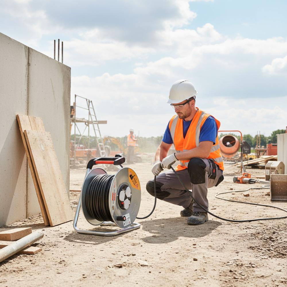 توصيلة كهربائية قوية بطول 50 متر، مصممة لتوفير مدى وصول واسع وتشغيل الأجهزة في المواقع البعيدة عن مصدر الكهرباء. تأتي على بكرة معدنية متينة تسهّل عملية لفّ السلك وحمايته من التشابك
